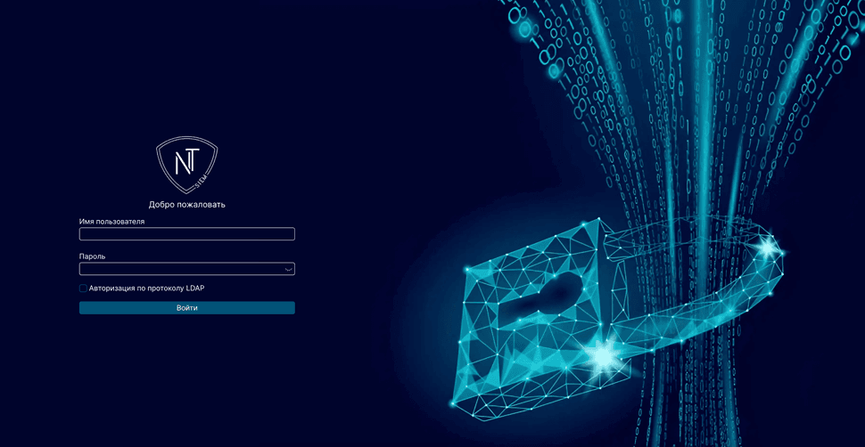 Процесс установки занимает несколько минут. Управление NT SIEM осуществляется через веб-интерфейс. Для этого следует открыть браузер Google Chrome и ввести в адресной строке IP-адрес (https://IP_Address, где IP_Address – IP-адрес сервера, где производилась инсталляция NT SIEM). Первая загрузка веб-интерфейса может занять несколько минут.