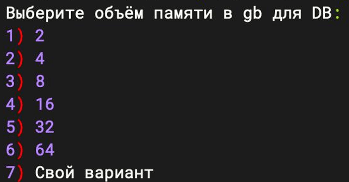 Если вам необходимо написать свою величину, то пишете цифру 7 и следующей командой вводите значение в ГБ.