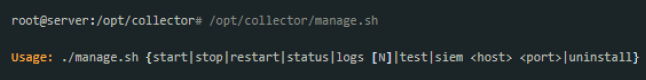 Для управления установленным коллектором необходимо использовать скрипт manage.sh, расположенный в директории установки: