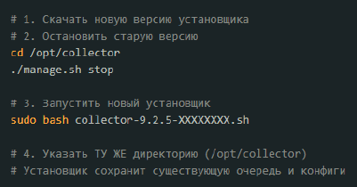 Для обновления коллектора необходимо выполнить следующий алгоритм действий: