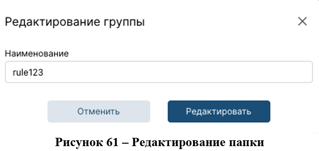 Для того, чтобы отредактировать папку необходимо выбрать папку в левой боковой панели на странице «Драфт зона» (рис.59) и нажать на "🖉", после чего появится модальное окно с возможностью изменения наименования папки (рис.61).