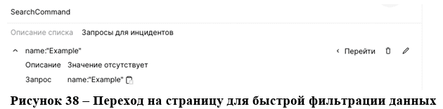 - нажав на кнопку "Перейти" (рис.38), произойдет переход на страницу "Инциденты", где данные будут сразу отфильтрованы по выбранному запросу, а текст запроса введен в поисковой строке;