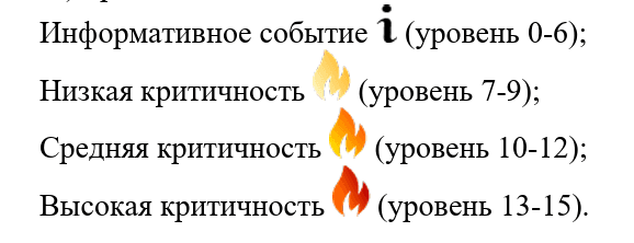 Следует обратить внимание, что событию в зависимости от уровня (поле rule_level) присваивается тип: