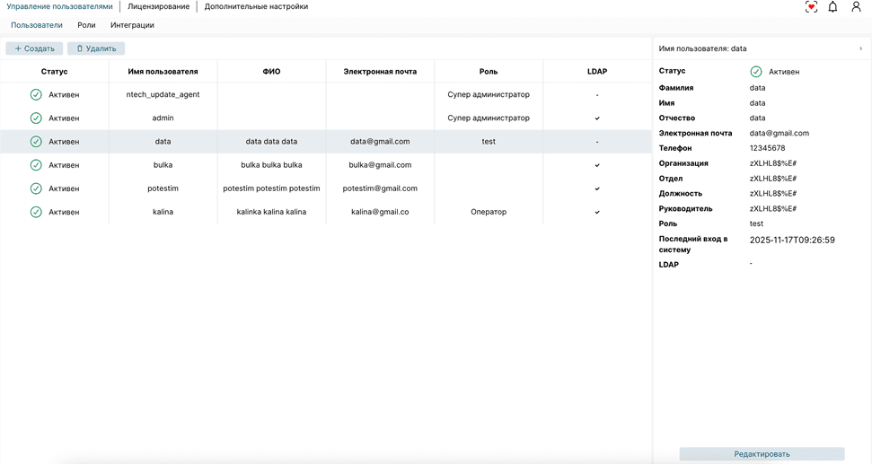 - На вкладке «Пользователи» выбрать пользователя с ролью «Супер Администратор».